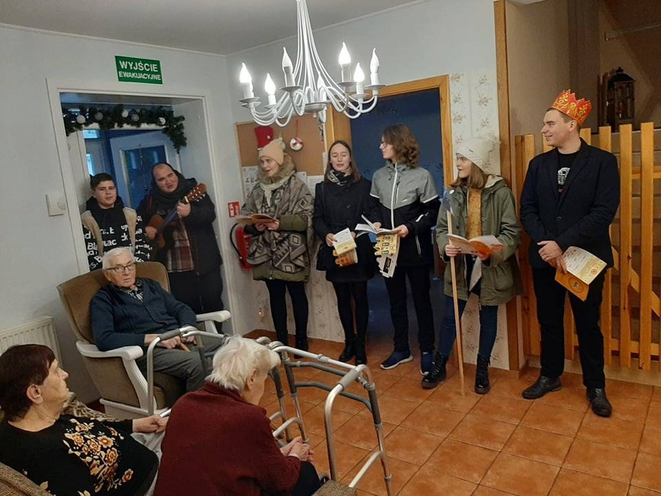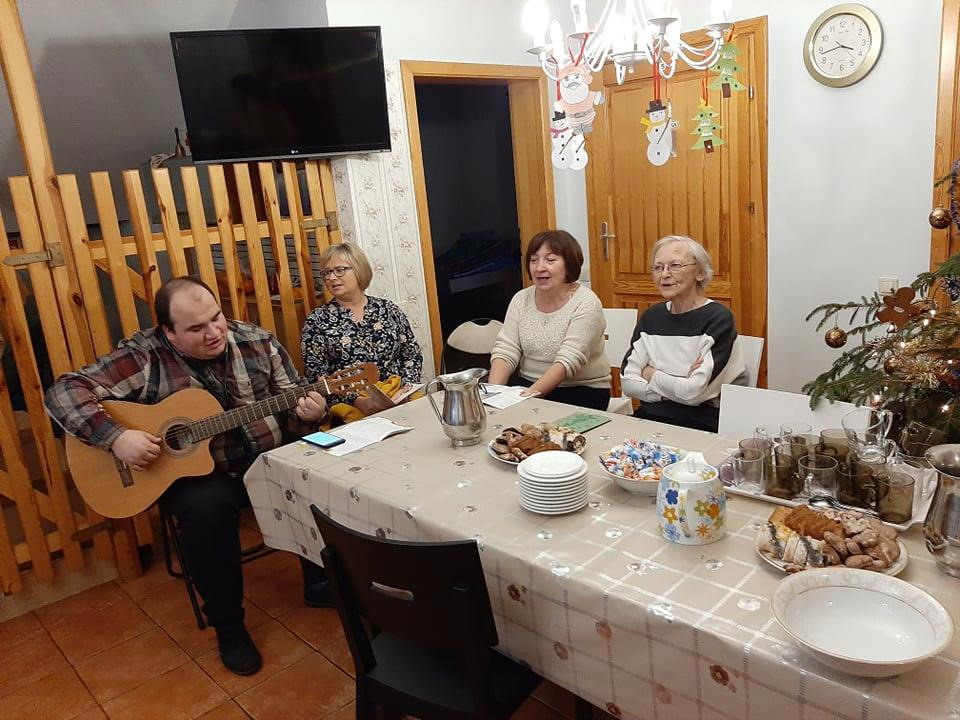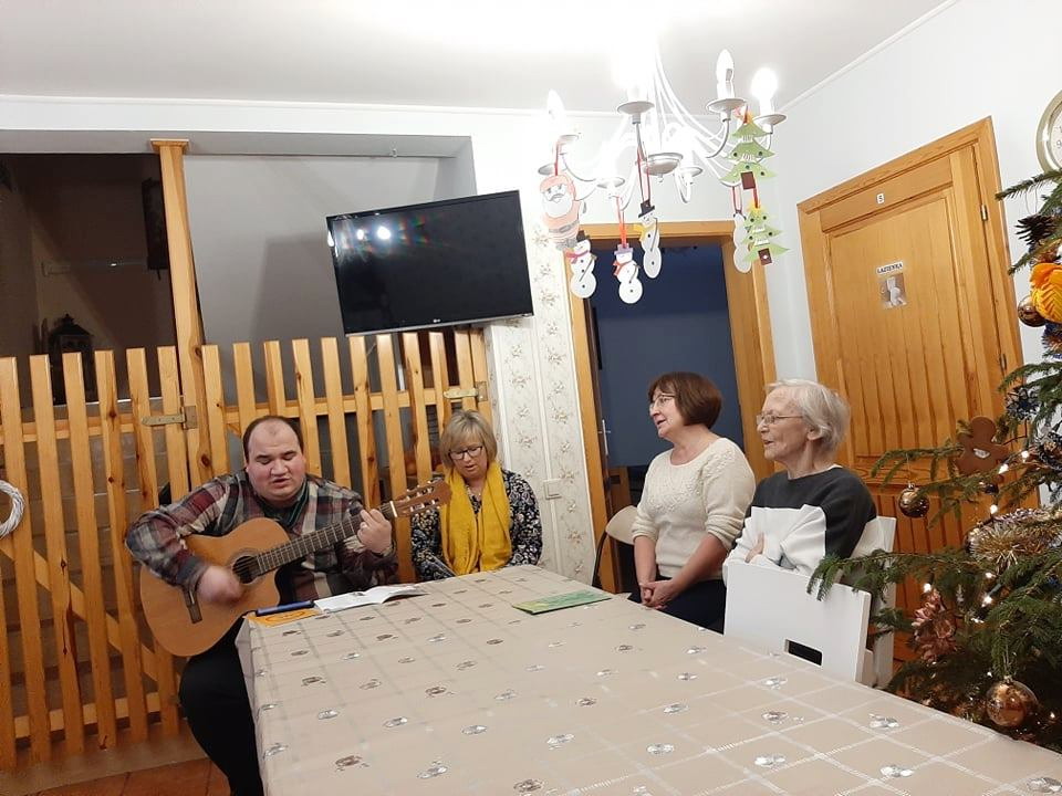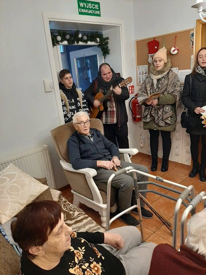 Każdego dnia czytamy „mądre” w naszym mniemaniu słowa różnych świętych. Ale czy wsłuchujemy się w te słowa, próbujemy odkrywać ich znaczenie? Czy chcemy zaakceptować sposób i metody, jakimi Pan Bóg próbuje nam coś powiedzieć, jakimi próbuje do nas dotrzeć? W piątek mieszkańców naszego Domu odwiedziła młodzież z Oazy naszej parafii. W planie mieliśmy wspólne śpiewanie kolęd i pastorałek przy choince, rozmowy i poczęstunek. Ale Pan Bóg zaplanował coś więcej… Nasz Dom ma wielu twórców i przyjaciół, ale jeszcze drzewo do szopy nie było wrzucane przez młodego człowieka w eleganckiej koszuli i marynarce, który nie pozwolił pracować kobiecie, a wziął i po prostu zrobił (dziękuję Mikołaj). Nasza młodzież z Oazy to istne diamenty do oszlifowania. Dziękuję za to, że pięknie śpiewaliście, nasi mieszkańcy żywo włączyli się w śpiew kolęd i pastorałek. Dziękuję, że nie patrzyliście na zegarki ani w komórki. Każdy wasz uśmiech to była prawdziwa radość dla naszych podopiecznych. Dziękuję waszym aniołom: Stasiowi, Paulinie, pani Annie Nowak i pani Marlenie Szczepańskiej za bezpieczne przywiezienie i odwiezienie was do naszego Domu w Annogórze.