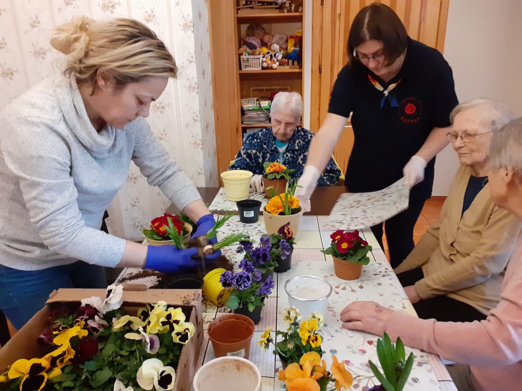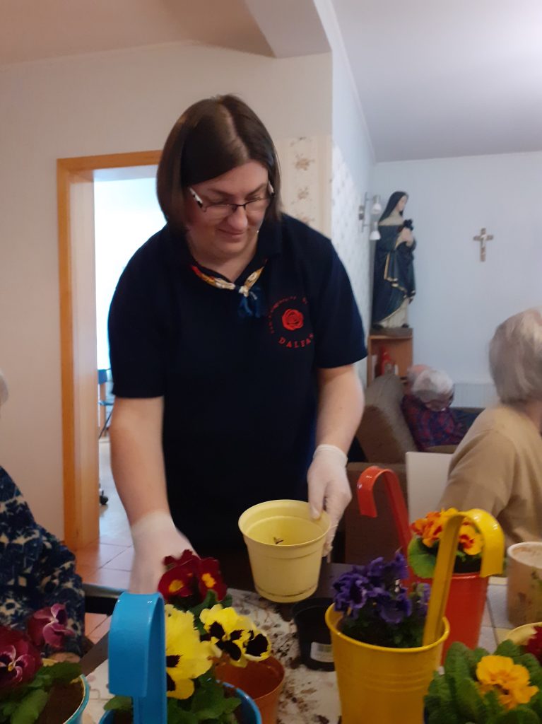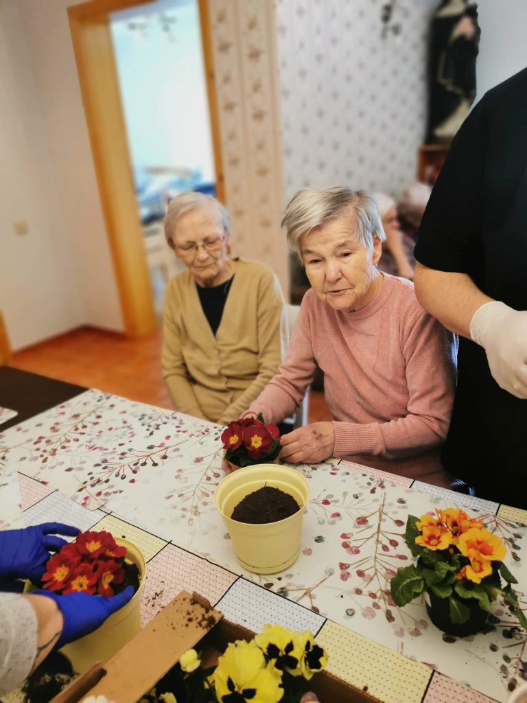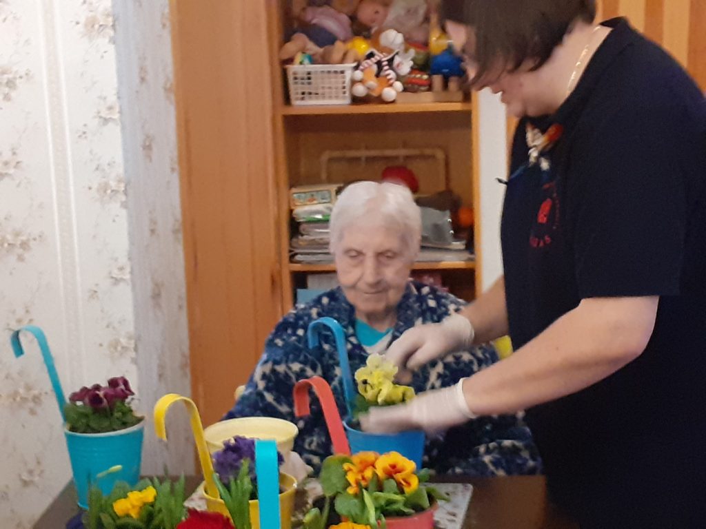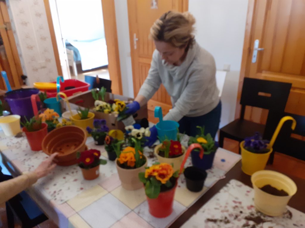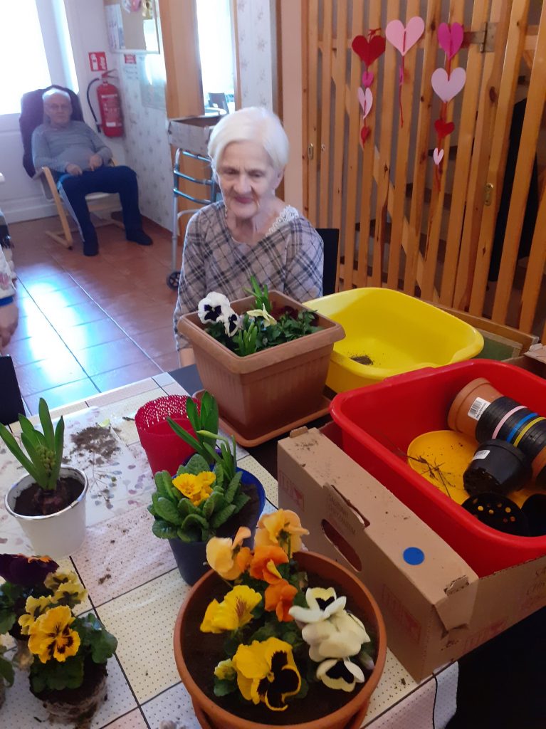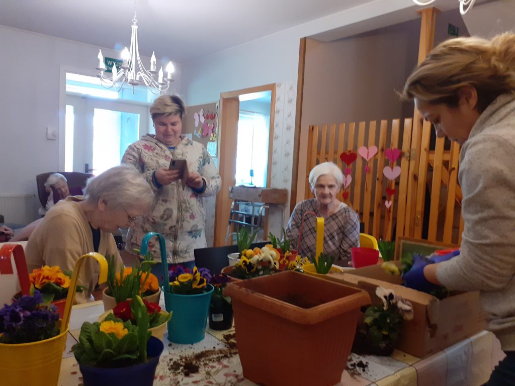 U nas już wiosna! Nasi mieszkańcy szykują się na zmianę pory roku. Jedni wyszli na wiosenny spacer do lasu, a drudzy za sadzenie kwiatków. Przyjechały opiekunki i praca szła. Sami zobaczcie jak pięknie przystroiliśmy teren wokół Domu.